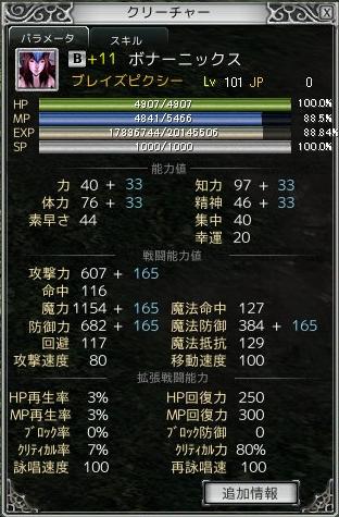 赤ピク用なので、石は体力と知力で固めてます。